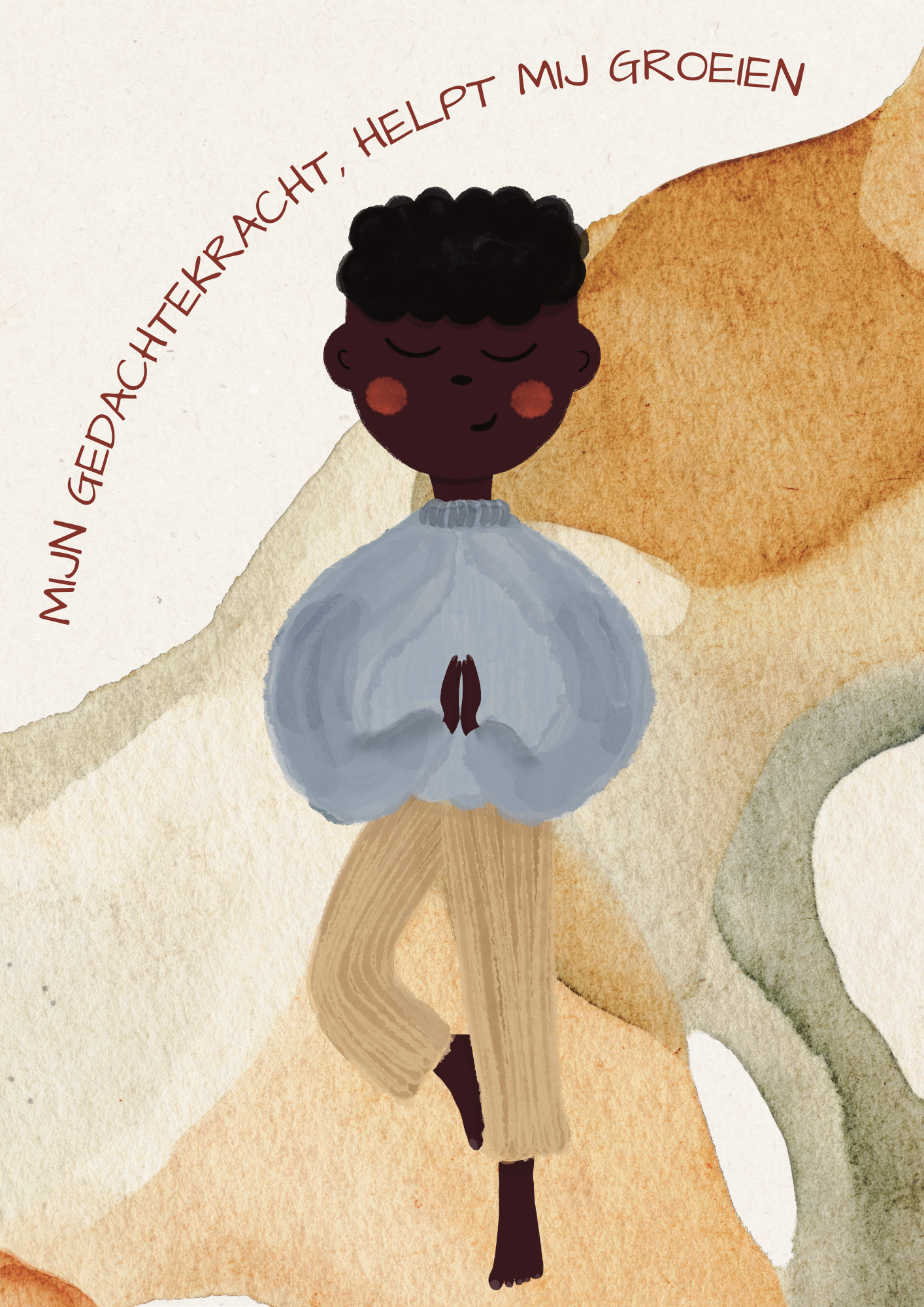 Deze liefdevolle A3-poster toont een jongen van kleur in boomhouding: stevig geworteld, in balans en in contact met zijn innerlijke kracht.